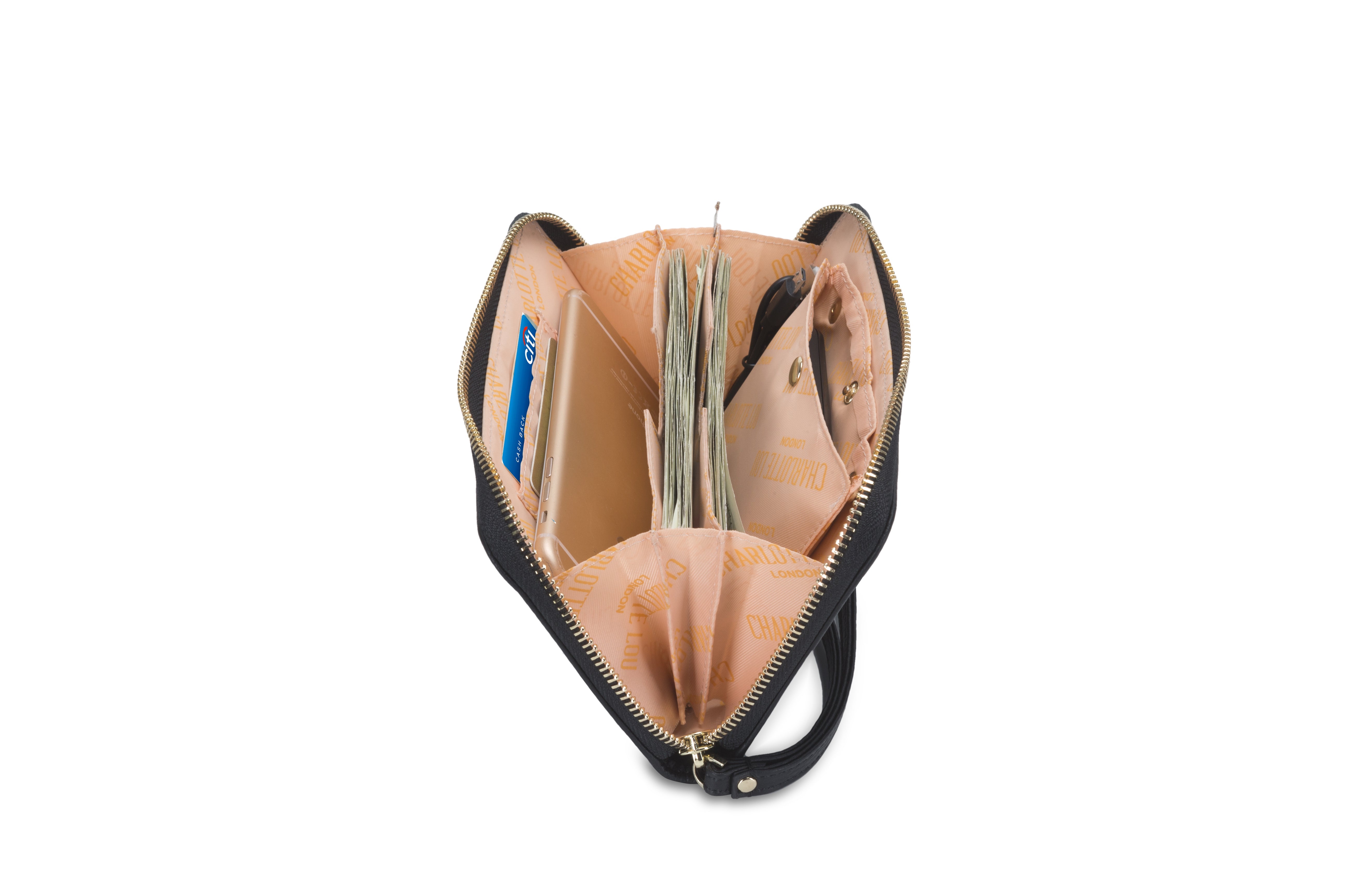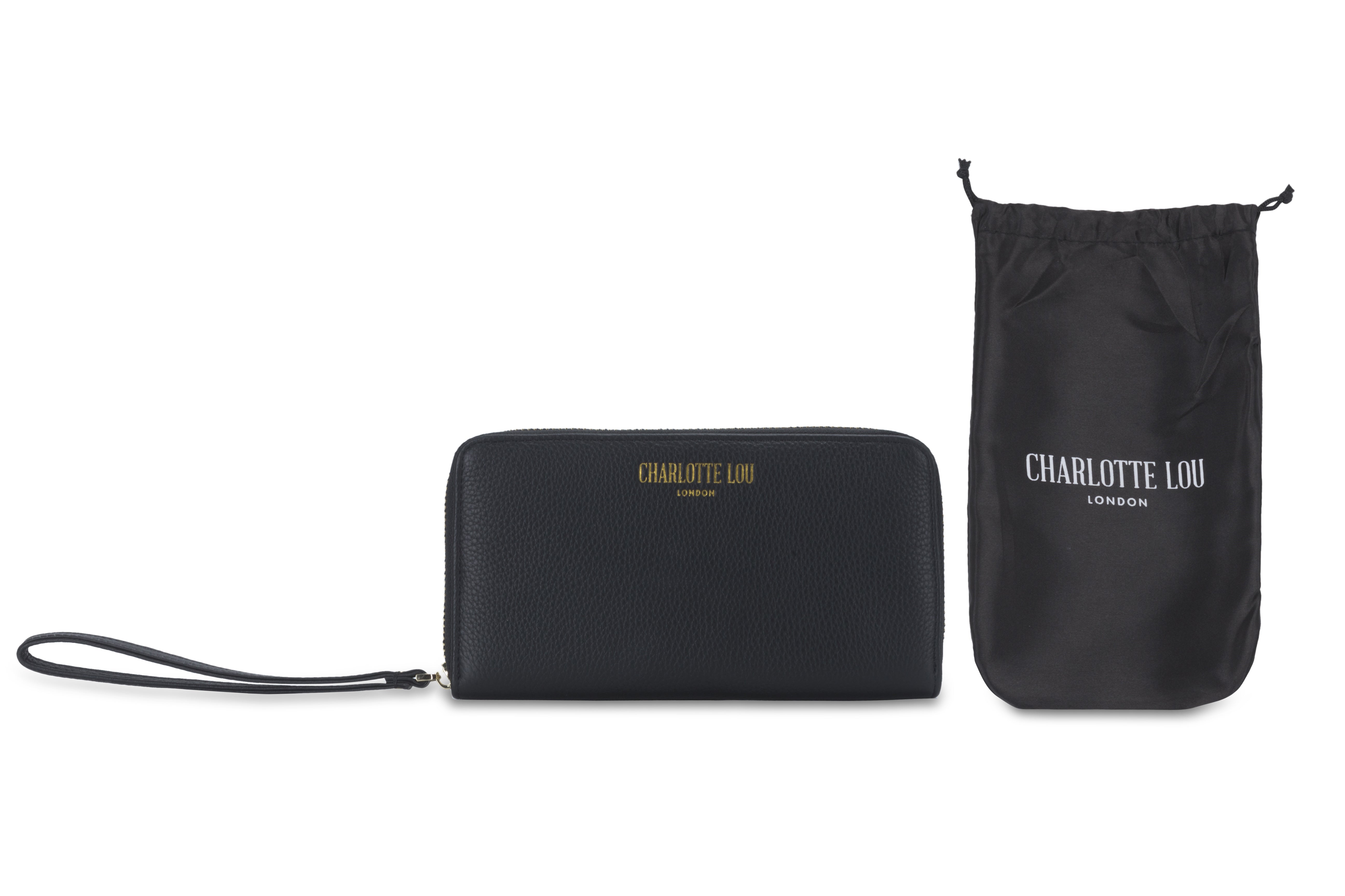 Stay stylishly charged with the Charlotte Lou Oxford Power Bank Clutch. The Oxford Powerbank Clutch is the perfect accessory to keep all your valuables tucked safely away, made from high quality black textured leather and featuring a beautiful gold full zip-around closure. Perfect for travel or an evening out, with a transparent slot for an ID and credit card, full length billfold and a portable, removable BBTEK 5000 mAh powerbank, perfect for recharging your phone on the go!